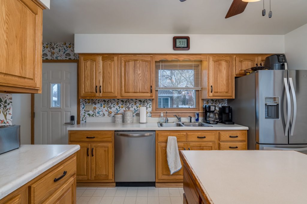 If you’re looking for a move-in ready home with all the big-ticket items already updated, this is the one. Welcome to this 4-bedroom, 2-bath multi-level rambler located in desirable Skyline, offering a unique and inviting floor plan you’ll fall in love with from the moment you arrive. The main level features a spacious living room with a wood-burning fireplace, a bright kitchen with a movable center island, and an open layout with direct access to the patio and fully fenced backyard - perfect for entertaining or relaxing outdoors. Upstairs, you’ll find the always-sought-after three same-level bedrooms, all showcasing original hardwood floors, along with a full bathroom. The lower level offers a generous family room with a second wood-burning fireplace, ideal for a game area or additional living space, plus a fourth bedroom, ½ bathroom, laundry area, and ample storage. There’s also space for a home gym or workout area. The exterior continues to impress with a maintenance-free Trex deck, large concrete patio with drain tile, gazebo, and a thoughtfully designed “bee sanctuary” along the back fence. A recently widened driveway provides additional off-street parking and leads to the attached two-car garage with a newer rubber roof and new garage door. Tasteful landscaping and front footings already in place allow for future additions such as a sunroom or overhangs.