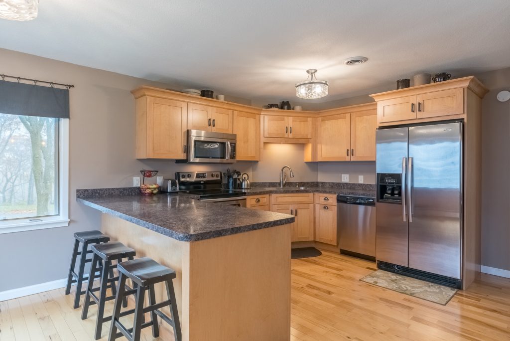 This 4 BR 3 BA walkout rambler is situated on a 1.14-acre ravine lot in Upper North Mankato. From the moment you make your way down the circular driveway, you will know you are home. The oversized exposed aggregate front walkway makes for a welcoming entrance before you step into a large open foyer, showcasing Hickory floors throughout the entire main floor. The open floor plan allows for numerous ways to enjoy the abundant natural light and views of nature out the many large windows throughout the home. Both the living room and dining room have gas fireplaces. Kitchen and dining room area is nicely updated with Maple cabinetry, dovetail drawers, soft close doors and drawers as well as a walk-in pantry. Stainless steel appliances were all new in 2011. The balance of the main floor includes 3 same floor bedrooms, full bath with double sinks and ceramic tile floors and a half bath in the master bedroom. The lower level of the home offers the 4th bedroom [currently being used as a home office] with large walk-in closet, another full bath, mud room with large walk-in closet, laundry area with wash sink, large extra room currently used for storage but has potential to be finished to your liking. Don’t forget about the beautiful family room with a wood burning fireplace, large windows and walkout to the peaceful backyard. This one of a kind lot is lined with trees and lilacs, has extensive landscaping, and the well-manicured yard makes for a very unique setting. You will absolutely love the gorgeous upper and lower exposed aggregate patios, retaining walls, 2nd garage, play area and woodshed in the back. Additionally, you will enjoy the two pear trees on each side of the home in the summer months and have endless hours of exploring the ravine portion of the yard all year long. Deer, turkeys, and other wildlife sightings are common on any given day of the year. NOTEWORTHY ITEMS: New windows & patio doors and basement door installed by Schmidt Siding & Window. Spray foam insulation added to the rim joist areas in the home. Both garages are heated and insulated. Shared driveway includes 2 additional parking stalls for this property. All new carpeting on steps and in lower level in 2016. Property has home security system that will stay with the property. Washer & Dryer were new in 2011. Water heater new in 2014. Multiple zones added to the heating system in 2013. 200 amp electrical service. The fridge & freezer in the extra room in the basement are negotiable. All other appliances are included in the sale of the home. Trampoline in backyard is also negotiable. Owner is a licensed agent in the State of Minnesota.